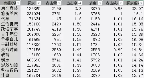 点击率:直接影响展现量的核心数据,媒体运营童鞋的考核KPI核心是CPM(千次展现成本)点击率越高CPM越高,媒体自然分配更多流量