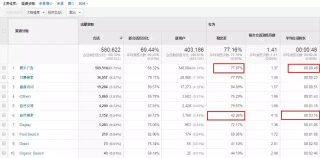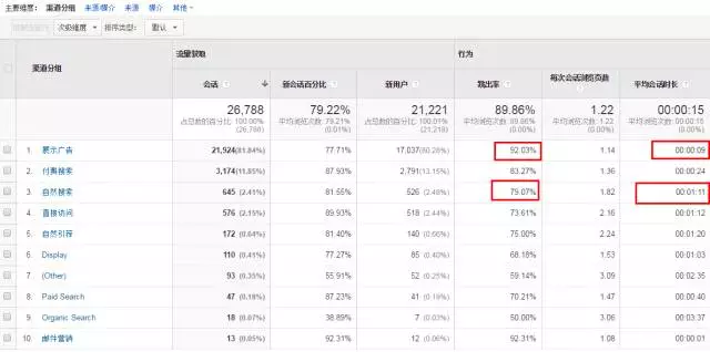 结论:自然流量跳出率低,付费流量跳出率高,流量有问题的可能性大