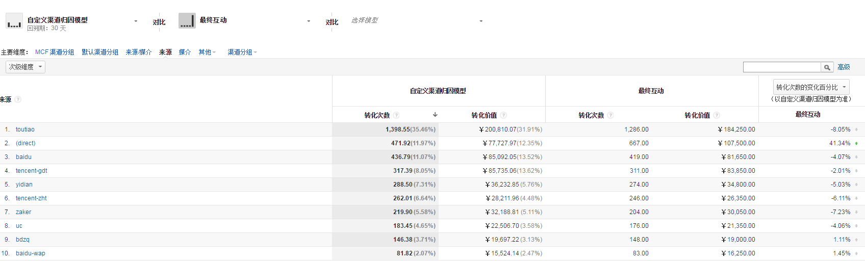 辅助转化和归因分析,是GA分析独有的功能,区别与传统的结果归因数据统计,GA会根据用户的访问轨迹,来给每个渠道分配不同的价值,从而得出接近事实的数据。