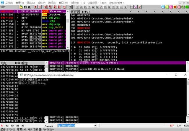 于是,当下次再ollydbg加载调试你的程序的时候,就会出现下面的情景。