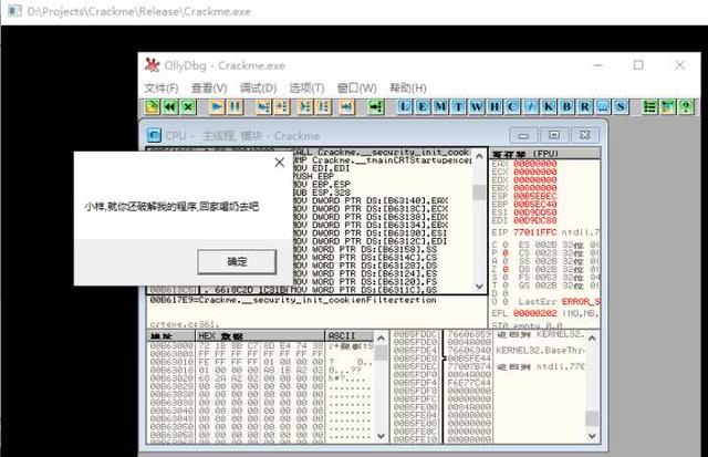 MessageBoxA(NULL,"小样,就你还破解我的程序,回家喝奶去吧","",MB_OK);