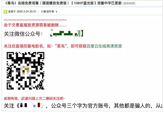 打开这些帖子,都有这么一句话:由于文章直接放资源容易被删除,关注 VX 公众号 XXXX。