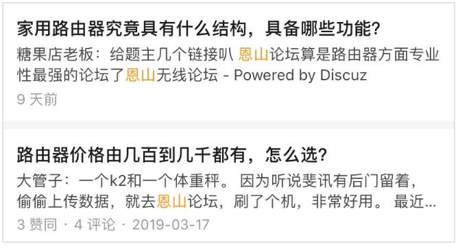 例如知乎关于路由器的问题里,不少回答引用了恩山论坛的帖子。