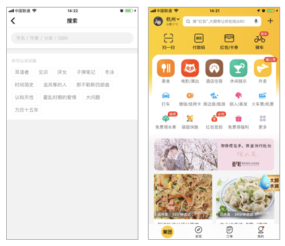 在搜索框内设置“引导暗文”屡见不鲜,它既可以教育新用户可以搜索哪些关键词(如下左图),也可以承担运营推广、商业化的职能(如下右图)。