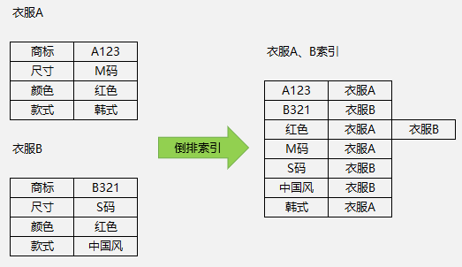 在对内容进行召回前,我们需要通过索引去连接内容,就像查字典时用的查字目录。搜索的索引是倒排索引(inverted index),可以简单理解为“需要根据属性的值来查找记录”。