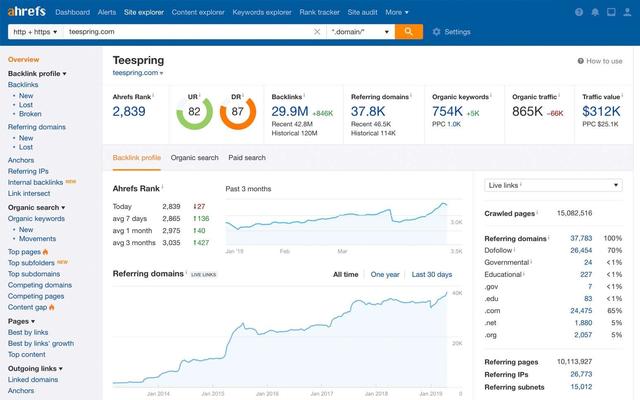 如果想深入研究反向链接,那么Ahrefs可以提供历史数据,前10的所有页面的流量估算等。