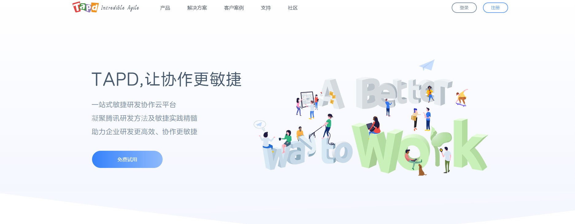 这点往往无可厚非,直接了当的介绍是最适合快节奏的环境,但是不一样的模块可以有更好的展现,例如TAPD的一站式敏捷研发协作云平台,凝聚腾讯研发方法及敏捷实践精髓……