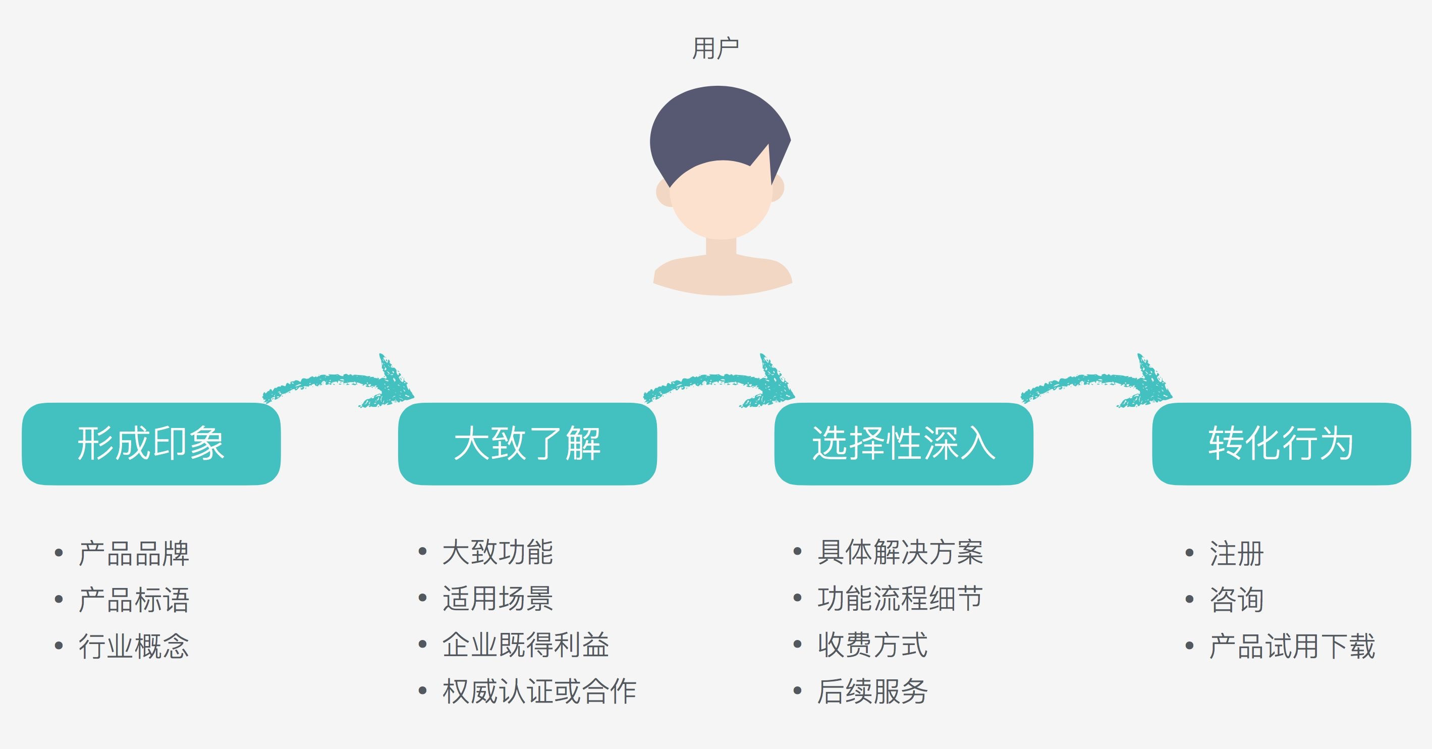 形成用户转化:根据自身的需求以及对产品的理解选择是否体验了解产品流程的细节;