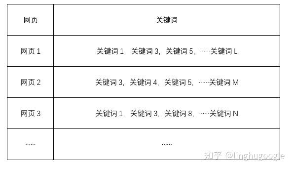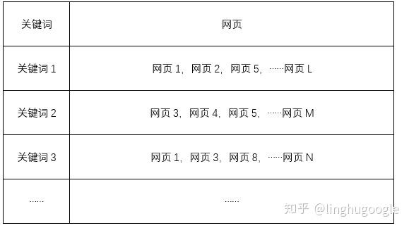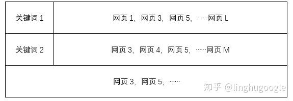 左边是关键词,右边是这个关键词出现在哪个网页中,一个关键词可能同时出现在很多网页中,所以是一对多的关系。