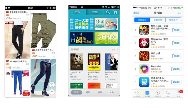 付费模式主要为销售实体或虚拟的“商品”。以电商模式和App Store为代表的虚拟商城两种模式。用户付费购买的都是有价值的商品:实体商品、APP、书籍、音乐、游戏等虚拟内容。