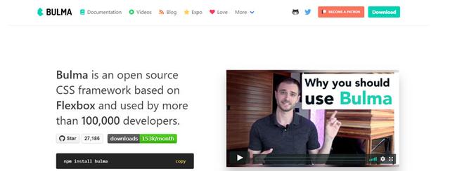 gzip大小21KB。Bulma虽然不是最轻的,但这个新的框架非常值得一提。BulMA采用移动优先的方法构建,使得每一个元素都能进行垂直阅读,其网格完全由FrasBox构建。使用相同大小的列实现灵活的布局非常简单,只需将.column类添加到HTML元素即可。