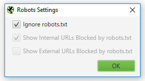 为此,您可以在Configurations> Robots.txt> Settings中更改 设置。可以选择忽略robots.txt。即使robots.txt禁止您这样做,也可以抓取网站。