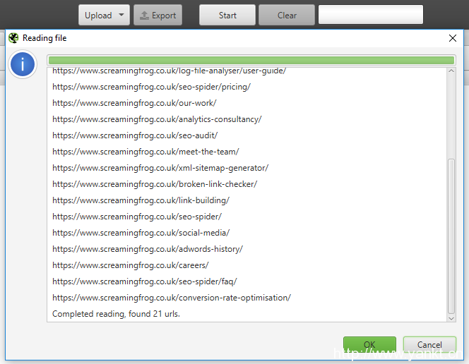 从这里开始,网站将一次自动抓取一个URL。但是,重要的是要注意Screaming Frog基于内部链接。因此,任何缺少链接的页面都不会出现在抓取中。