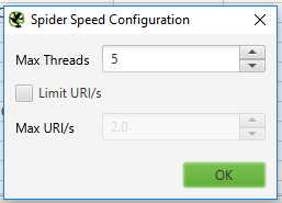 如果您的网站托管在Shopify上,或者您不能将您的IP地址列入白名单; 那么你会想慢慢抓取网站。可以在Configuration> Speed中更改此 设置。您可以为每秒的URI请求数添加限制。