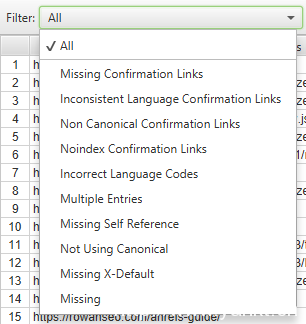 检查HREFLang标签有很多好方法,但Screaming Frog是另一种方法。这可以在屏幕顶部的Hreflang选项卡下找到。