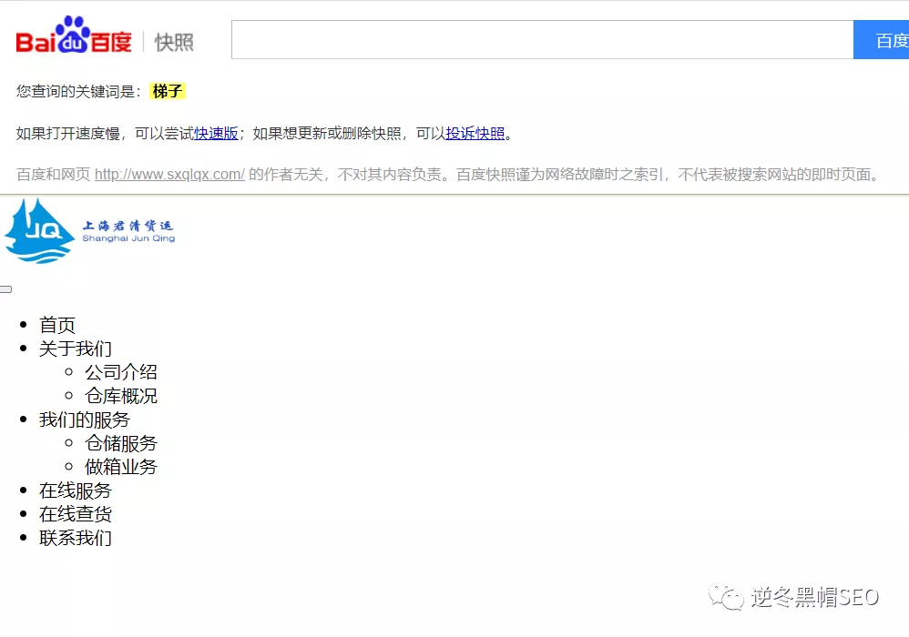 通过百度快照我们可以看到、网站为镜像网站(不要问我怎么知道的、经验而已)、他镜像的原站:http://www.shjunqing.com/、网站模板虽然比较丑、但网上模板比较少、之前也讲过、【模板】也是网站原创度的一个重要方面!之前也分析过一些兄弟、镜像国外的网站模板、其实也是同样的道理!物以稀为贵这种思维、同样适合SEO!