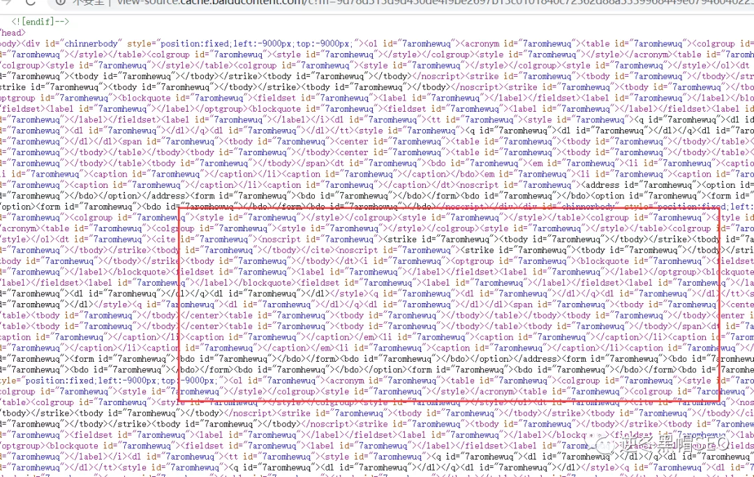 我们通过查看HTML源码可知、网站作者所用镜像程序附带【干扰码】功能、许多人不太理解干扰码是什么东西!其实干扰码不会显示在页面里、就是一串随机生成的HTML、那为什么要加干扰码!其实和【干货①】中有所呼应!我们在【干货①】中讲到、百度其实会根据网站模板判断原创度!而添加干扰码之后、百度在对某一个PAGE页面、分块、计算的时候、会发现其实这个PAGE和原来的PAGE有很大一部分区别、又一次增加了模板的原创度!而且干扰码比较长、占整个HTML中很大一部分!
