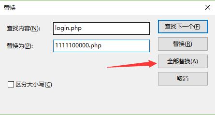 接下来我们首先要修改的是后台登陆文件login.php,这里我们直接对login.php进行重命名,这里我将login.php修改为1111100000.php,大家自己随意修改,只要保持后缀.php不变就OK。然后将zb_system下的管理目录admin进行文件夹重命名,这里我修改为houtai。然后用记事本打开文件cmd.php,使用Ctrl+H打开记事本的替换功能,将login.php替换为我们刚刚修改的文件名1111100000.php,这里要替换的应该只有一处。然后再次打开替换功能,将admin/替换为houtai/(加/是防止替换掉其他的admin数据,所以必须加/)。