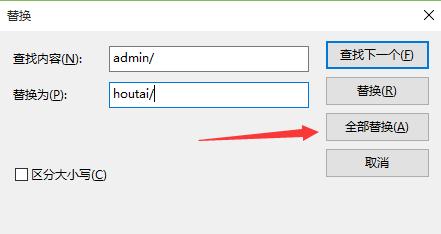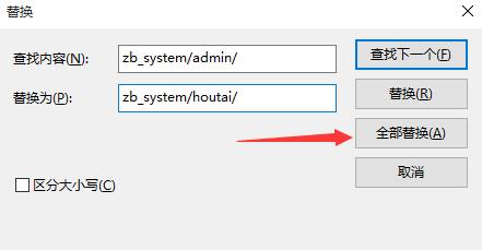 然后进入管理目录houtai,用记事本打开其中的源文件admin_top.php、category_edit.php、edit.php、index.php、member_edit.php、module_edit.php、tag_edit.php。在这些文件中使用替换功能将zb_system/admin/替换为zb_system/houtai/。