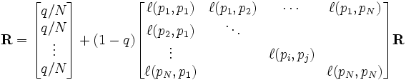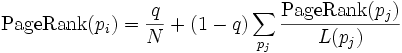 PR(A) =(PR(B) /L(B)+PR(C) /L(C)+PR(D)/L(D)+…+PR(N)/L(N))q+1-q
