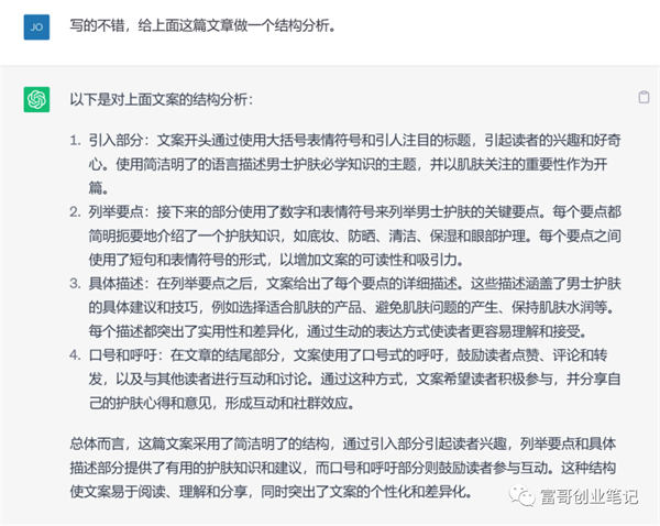 按照上面的对ChatGPT的训练方式,我们可以创作出不同领域的文案