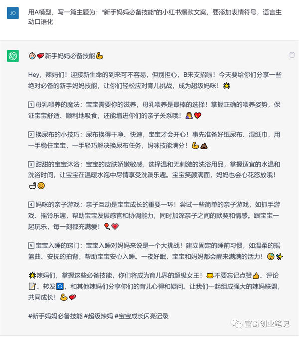 用A模型,写一篇主题为:“新手妈妈必备技能”的小红书爆款文案,要添加表情符号,语言生动口语化(这里需要提式加表情和口语化,否则GPT会忘记)