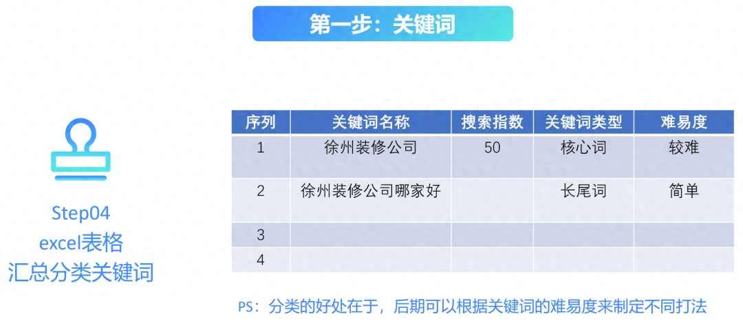 关键词分为核心关键词和长尾关键词。以“视频剪辑培训”这个项目为例: