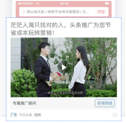 今日头条的资讯信息流中通过制作相关的推广文案,在依托人工智能实现的广告推荐形式,下面给大家罗列几种常见的形式,如: