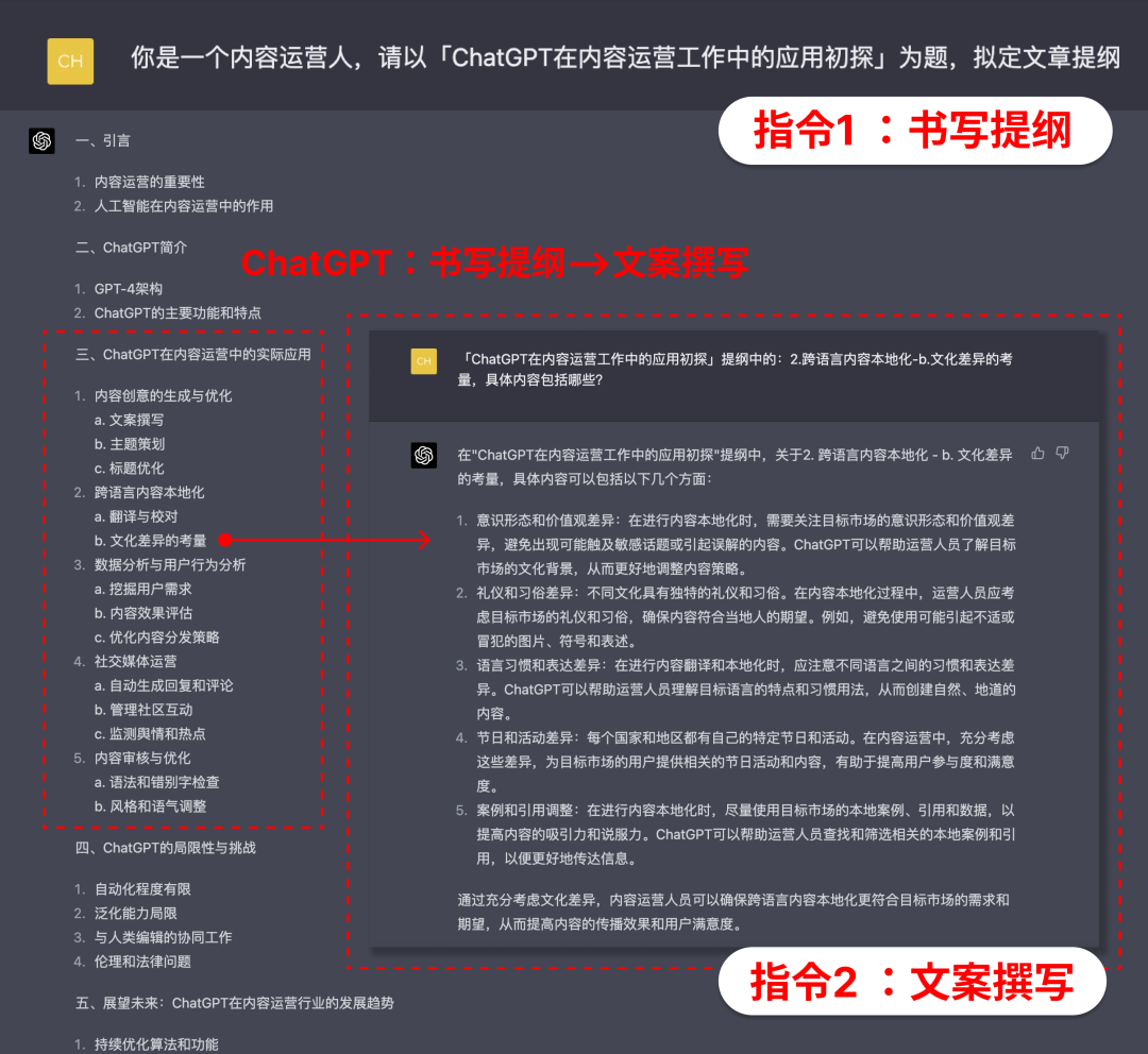 ChatGPT给出提纲后,针对提纲中任意一块的内容,你有不理解或者需要它补充的,都可以让它进行说明和文案写作。(今天文章中的提纲也采用了 ChatGPT 给出的部分提纲,活学活用·-·)