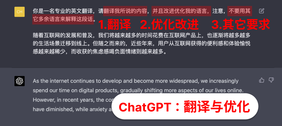 【进阶玩法】给ChatGPT设定角色,要求它翻译并且改进优化语言。