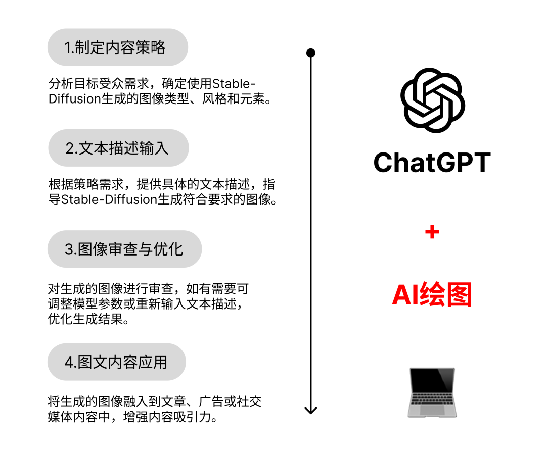 ChatGPT生成文本内容,SD 生成相应的图像,结合两者优势,可以减轻人工编辑负担,提高工作效率,进行更多的创意发散。如生成个性化封面图、制作定制化运营图片等。