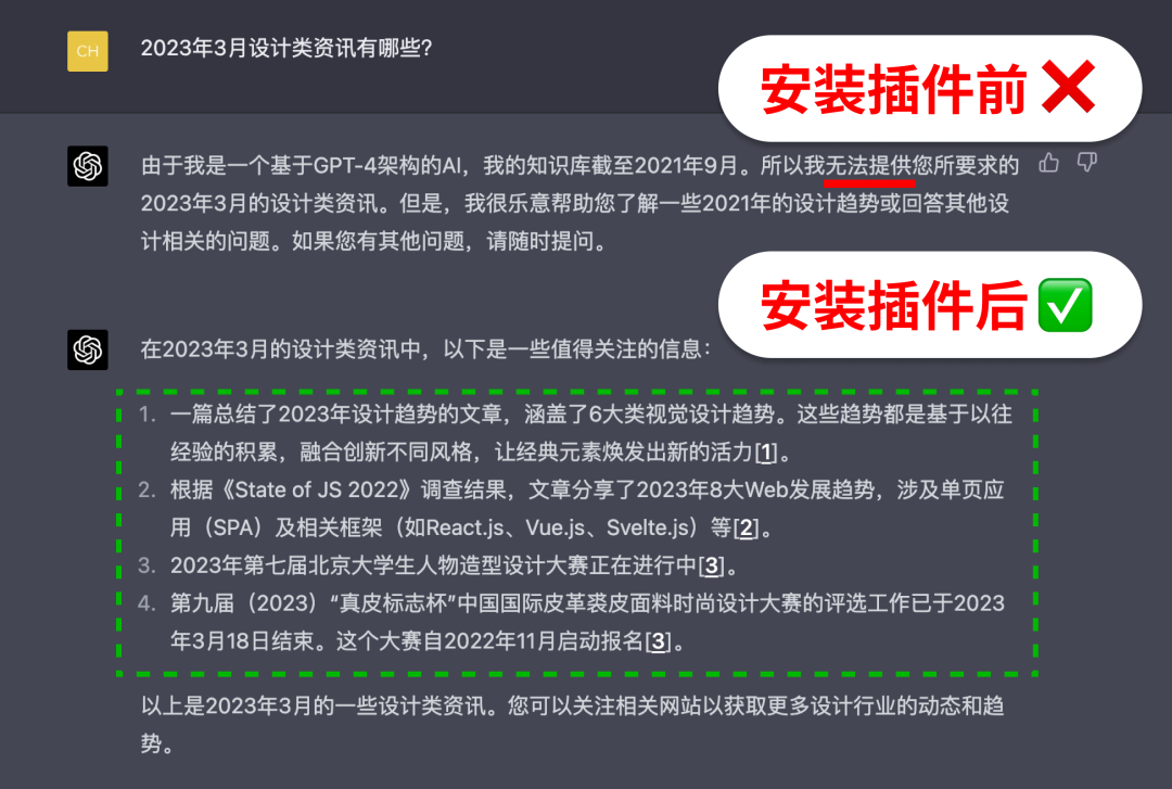 *因ChatGPT并不支持实时搜索,以上内容需要借助第三方插件完成,详见文章三-3.解锁更多隐藏玩法。