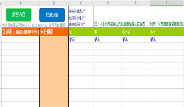 将所下载出来的八千多个词放在分词工具里,然后词根分别录入“加盟”、“代理”、“厂家”、“招商”、“费用”、“批发”、“排名”、“十大”等等。再点击快速分组,就可以很快将关键词分类清楚。