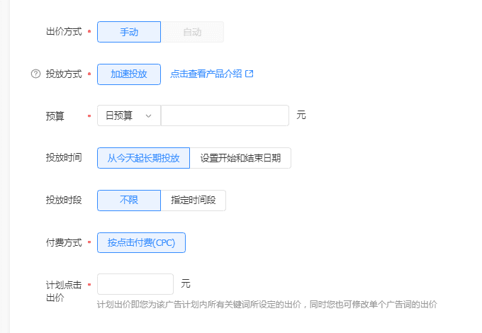 出价方面,如果按点击出价,则是cpc,如果按转化,则是ocpm和ocpc