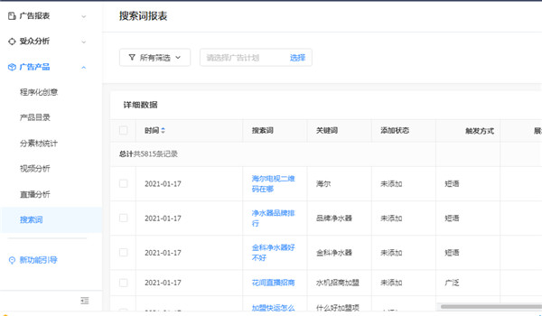 匹配的调整,我们主要是根据展现量和搜索词匹配度情况去调,展现为0或者展现量少的就需要放开匹配。