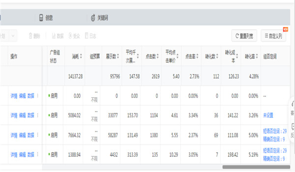 关键词的调整,主要是匹配调整、价格调整、开启、暂停、添加、删除。