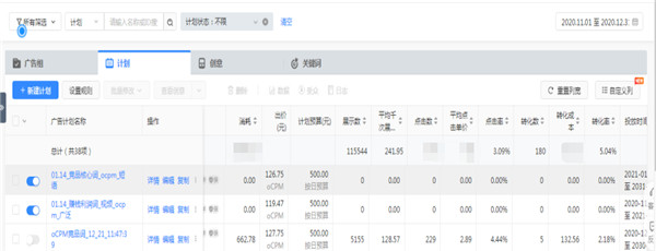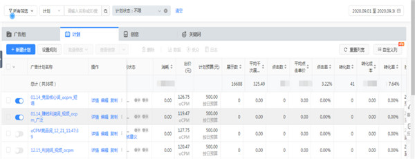 以此类推,做10-15个计划。这种新建计划的方法,比较细分。如果你不想这么细分,也可以将与业务相关的关键词整合在一起,只新建2-3个计划,去集中投放。