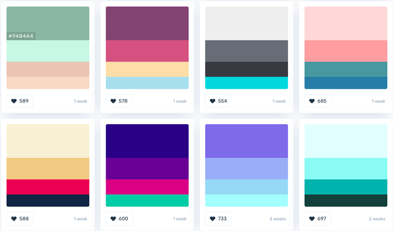 一个非常好用的配色网站,网站提供了非常多的配色方案,对比色、邻近色、相对色都有。点击色彩就会出现色值,如果你喜欢某套配色,直接拿走就行。