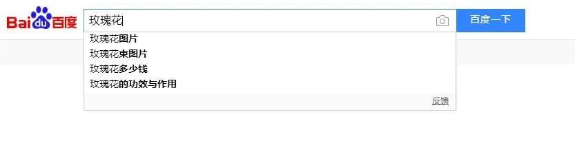 如果你不懂得怎么准备长尾关键词,最简单的就是打开百度,在搜索框输入短关键词,比如“玫瑰花”。